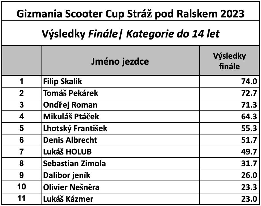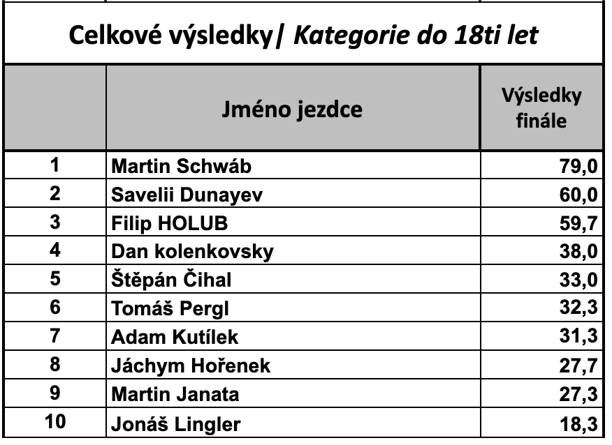 Výsledky finále: